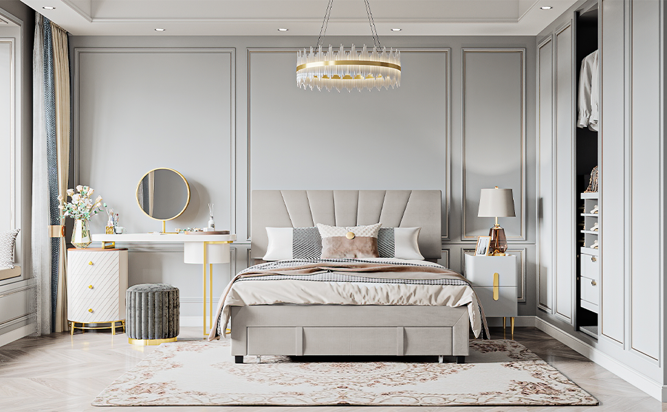 【Long Lifespan】Solid pinewood drawers ensure a longer lifespan and an odorless storage experience.Gold-plated carbon steel legs offer stable construction for the set.