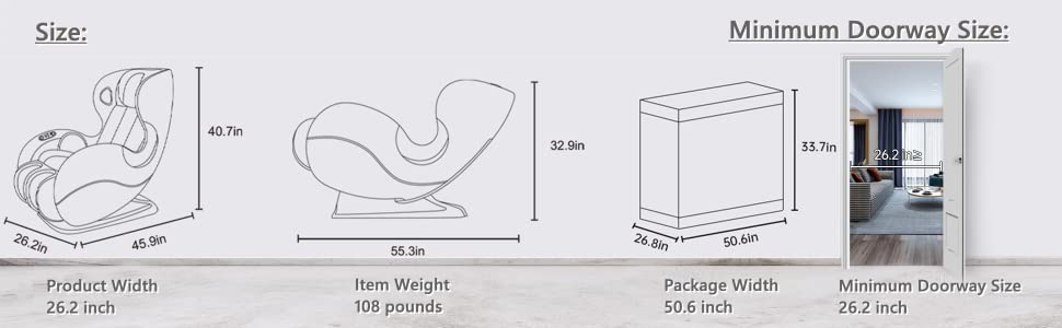 - 【Zero-Gravity Massage Chair & Space Saving】The Zero-Gravity Massage gives you the best massage position to free your body, can reduce the burden of heart and back pain, stimulate blood circulation. The massage chair has 2 levels of zero gravity angles for you to choose. Space saving design: wall clearance of 2.8 inches