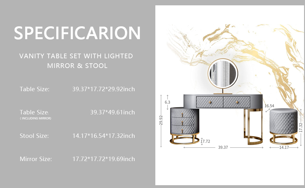 your makeup more refined and elegant every time, humanized design makes beauty everywhere. The mirror can be placed at will, and the spacious table top can be used as a writing desk.