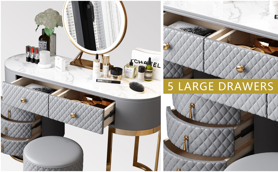 Equipped with 5 large drawers provide you with plenty of storage space, allows you to put all your skin care products,