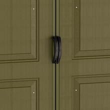 Tall walk in shed (73 inch tall); Wide Double Doors (61 Inch wide x 71 Inch tall)