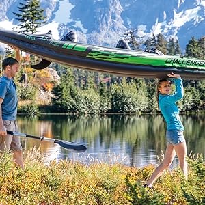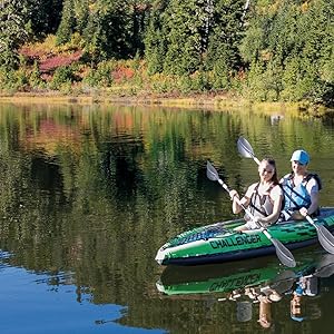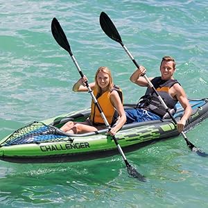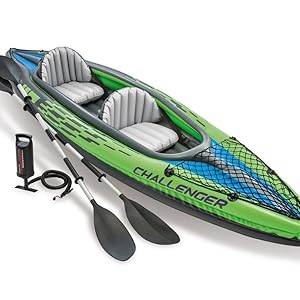 Intex K2 Challenger Kayak 2 Person Inflatable Canoe with Aluminum Oars and Hand Pump