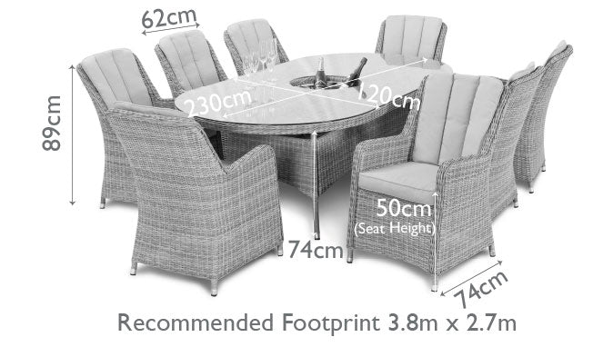MALIBU 8 SEAT OVAL RATTAN DINING SET IN LIGHT GREY